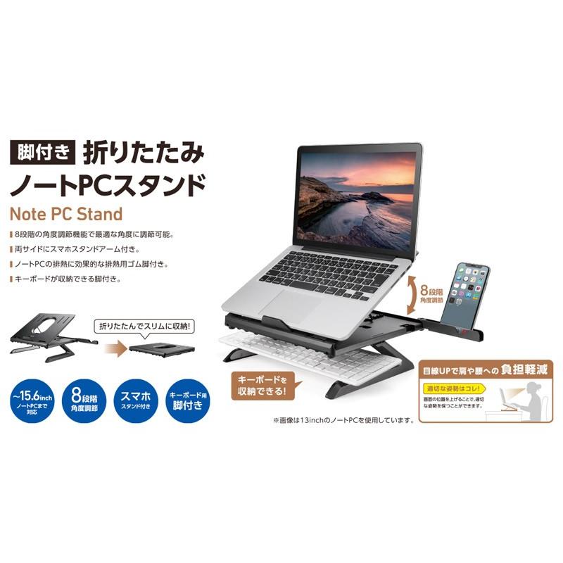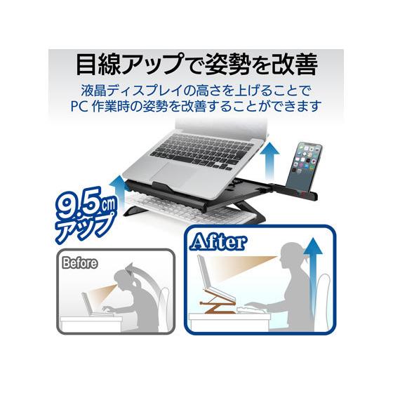 Amazon Co Jp エレコム ノートpcスタンド 折りたたみ 8段階 9 5cm高さアップ脚 スマホスタンド機能付 15 6インチノートpc ブラック Pca Ltsh8bk パソコン 周辺機器