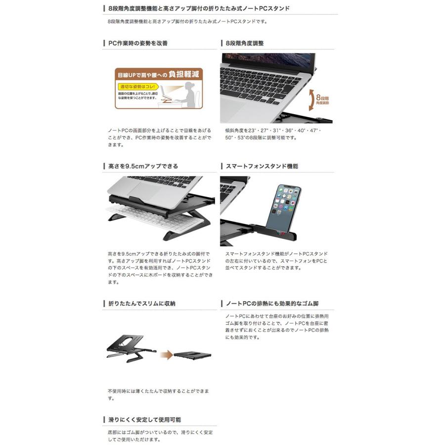 折りたたみノートpcスタンド 8段階 脚付 Pca Ltsh8bk