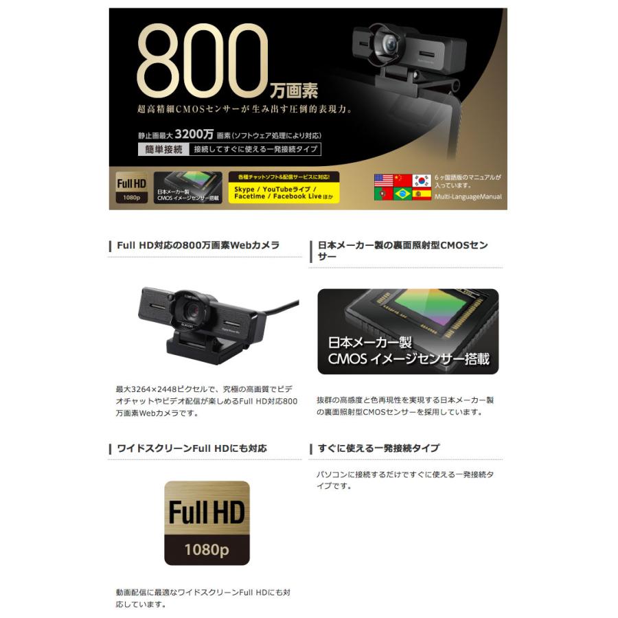 Amazon エレコム Webカメラ ステレオマイク内蔵 800万画素 高精細ガラスレンズ レンズフード付 ブラック Ucam C980fbbk エレコム ウェブカメラ 通販