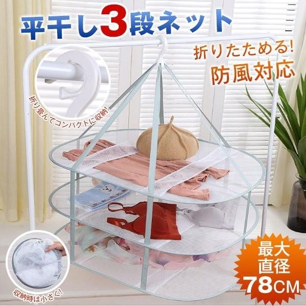 Amazon Co Jp 物干しネット 3段 平干しネット 衣類変形防止 ニット干し 平置きネット折りたたみ収納 防風 ホーム キッチン