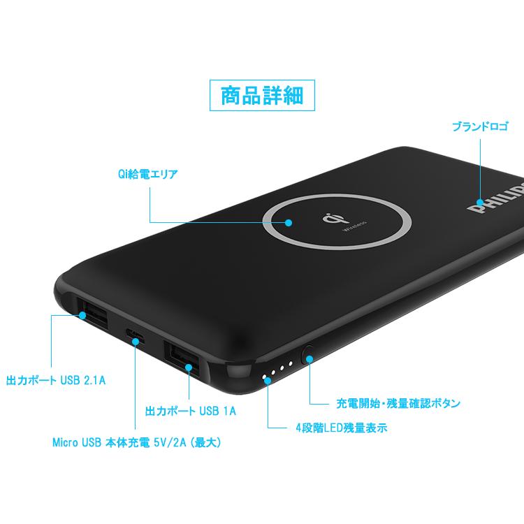 Usbポート Qi対応端末にワイヤレス同時充電可能 Philips Qiワイヤレスモバイルバッテリー Dlp9611 アスキーストア