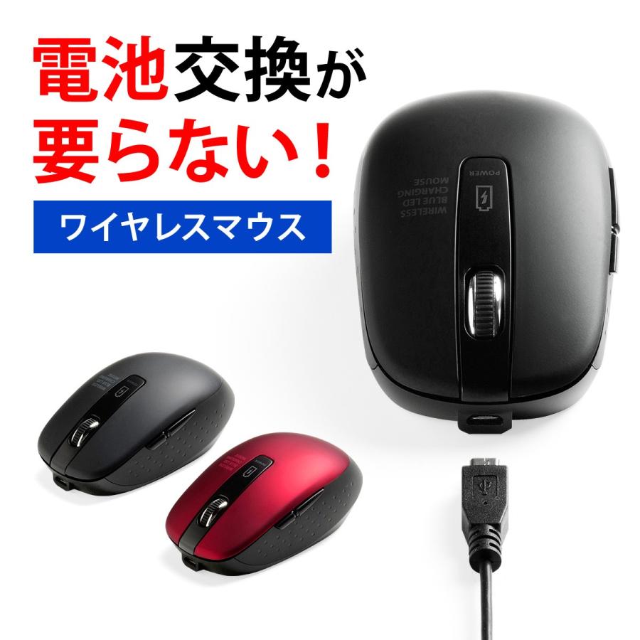 ワイヤレスマウス 充電式 静音 ブルーled光学式 5ボタン ブラック 400 Ma109bkの販売商品 通販ならサンワダイレクト