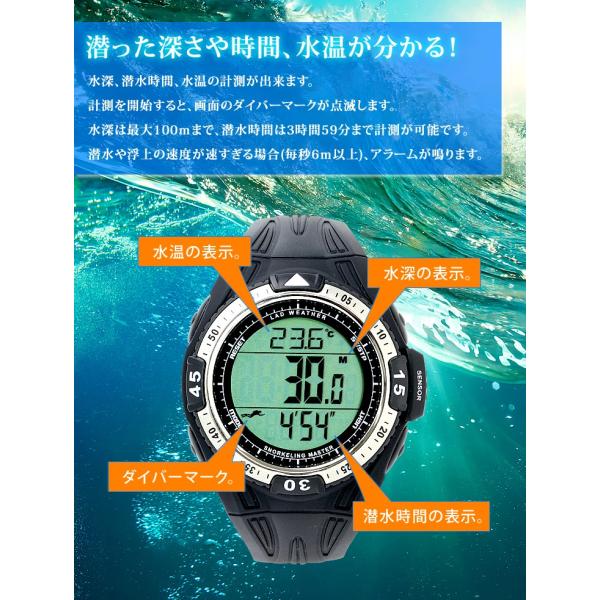 タイバーズウォッチ プロダイバー レスキュー海猿に人気 最新スイスセンサー電子水深計水温計記録ダイバーズウォッチスイスセンサー電子水深水温計 ダイバーズウォッチ スキューバーマスター