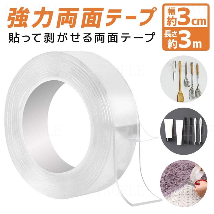 楽天市場 Ss期間中50 Off 両面テープ 超強力 魔法のテープ 魔法テープ はがせる 長さ3m 透明 幅30mm 厚手 繰り返し使える 強力 滑り止め スマホホルダー 車載 水洗い可 Diy 送料無料 セレクトショップ リノフリ
