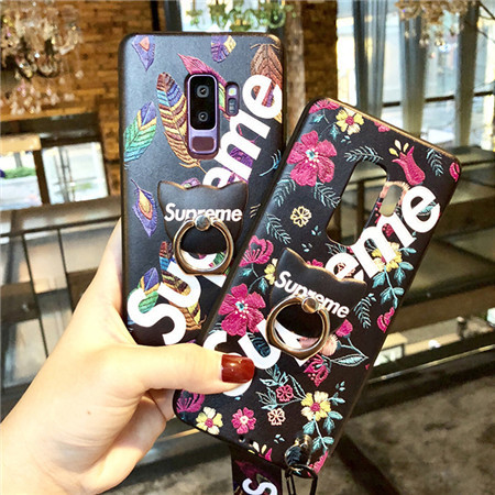 Supreme Galaxy S9ケース Galaxy S8plusケース おしゃれな浮き彫りデザイン ギャラクシーs9 プラスカバー シュプリーム リング付き携帯ケース ケース ギャラクシー シュプリーム
