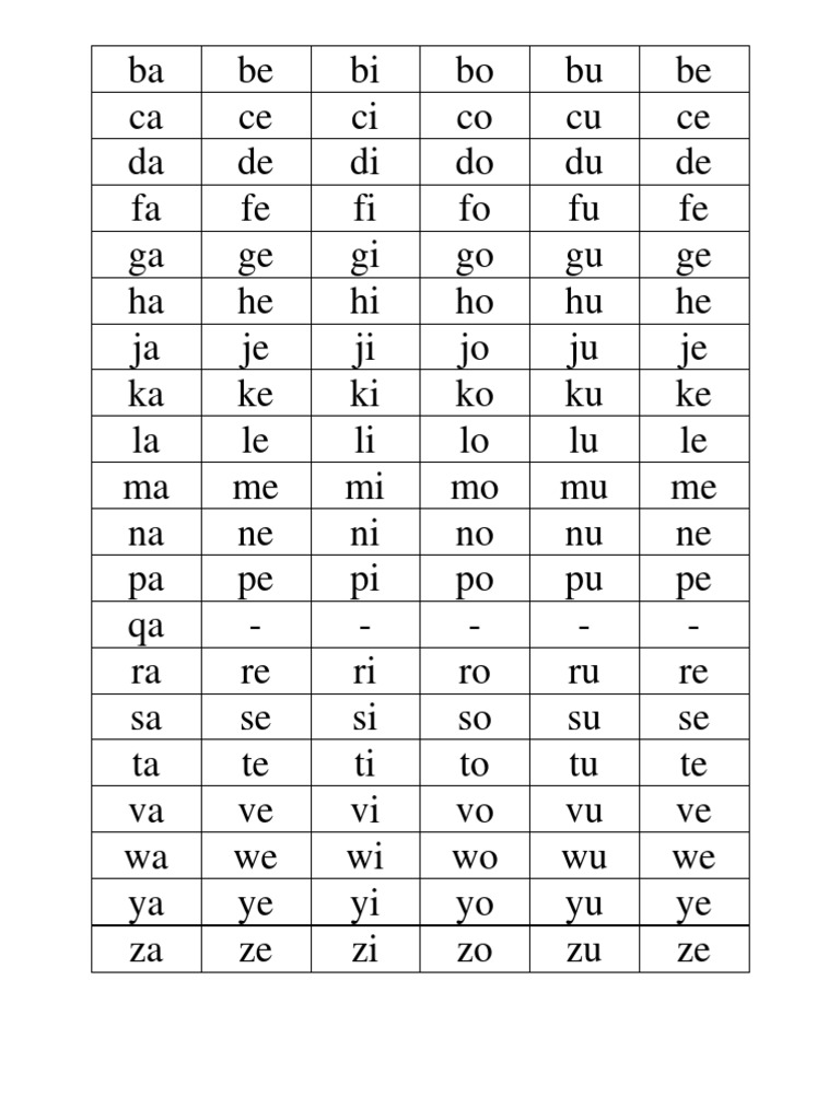 Latihan Membaca Suku Kata Terbuka Kv