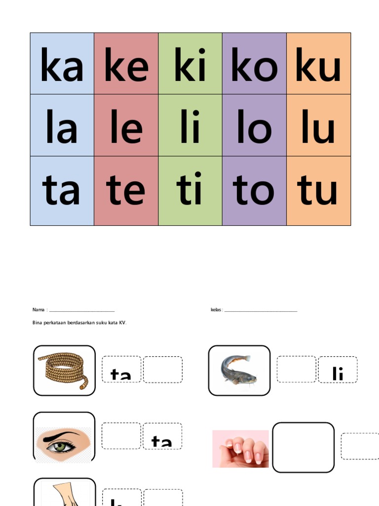 Carta Suku Kata Kv Suku Kata Belajar Ejaan Buku Pelajaran