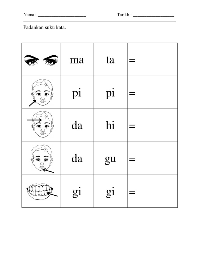 Perkataan Suku Kata Bahagian Muka