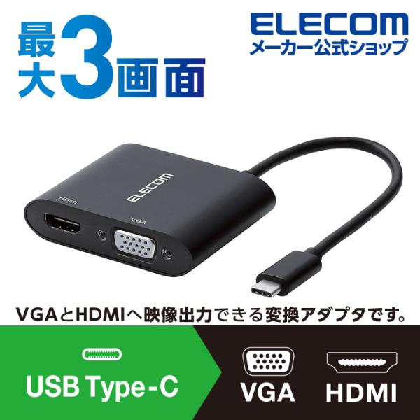 変換コネクタ Type C変換アダプタ Type C Hdmi Vga 複写 拡張 タイプc 映像 変換 Typec Hdmi Vga 拡張出力対応 ブラック エレコム Ad Chdmivgahbk エレコムダイレクトショップ 通販 Paypayモール